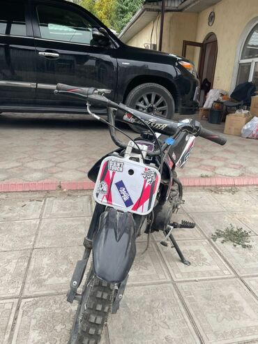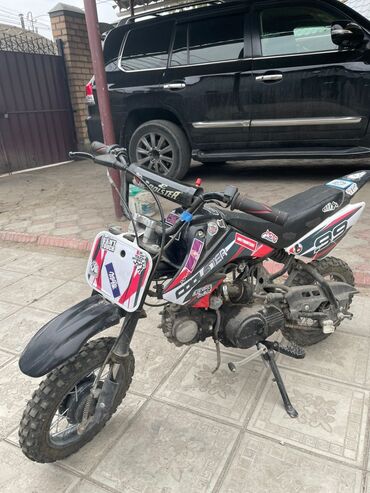 - Компактный кроссовый питбайк на базе Coolster с наклейками и номерной табличкой.