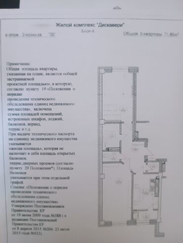 Представляем план квартиры в жилом комплексе "Дискавери", расположенной на 6-м этаже, блок-6. Это двухкомнатная квартира №26 общей площадью 71.80 м². На плане детально изображены жилые помещения, включая встроенные шкафы, лоджии, балконы и террасы, что обеспечивает полное представление о конфигурации. Этот технический паспорт квартиры является надежным документом для ознакомления с планировкой жилья.