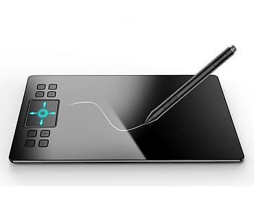Цифровое перо пассивно, не нуждается в зарядке и владеет уровнем чувствительности 8192 давлений. Отсутствие необходимости зарядки стилуса позволяет рисовать в любое время, играть быстро, плавно. На панели пера размещено две клавиши, где одна настроена на правую клавишу мыши, вторая на переключение между пером и ластиком.