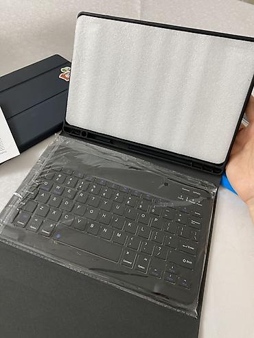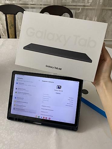 - В комплекте: коробка Galaxy Tab A8, сам планшет и смарт‑чехол с беспроводной Bluetooth‑клавиатурой (Smart Keyboard Case) — превращает планшет в мини‑ноутбук, есть тачпадная раскладка, крепление‑подставка, отделение под стилус. Клавиатура тонкая, съемная, подключается по Bluetooth, есть кнопки мультимедиа.