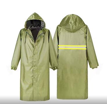 Плащ выполнен из прочного нейлона с ПВХ покрытием, что гарантирует водонепроницаемость и долгий срок службы. Материал устойчив к воздействию влаги и не теряет своих свойств при многократном использовании. Застежка сочетает молнию и кнопки, что повышает удобство и надежность фиксации. Плащ оснащен притачным капюшоном, который можно сложить и спрятать под молнию на воротнике, благодаря чему изделие удобно хранить и носить.