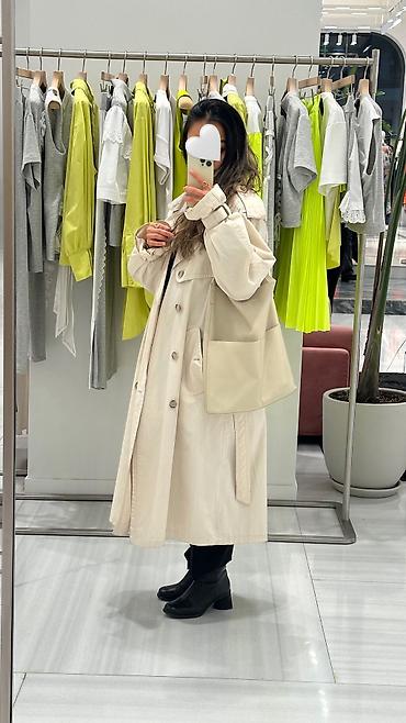Бежевый женский тренч-кот с поясом - очень женственная модель. Сидит красиво и стильно. Плотная ткань и отличный подклад. Покупался в Европе. Качество супер👍🏻 Аксессуары на фото приведены для пр...