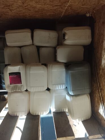 Канистры пластиковые, прямоугольные, белые (полупрозрачные), с ручками. Объем — ориентировочно 25–30 л каждая. Материал — плотный ПЭНД (подходит для жидкостей, бытовой химии, технических составов, ...