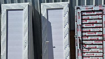 - В наличии двери ПВХ с глухим заполнением и металлопластиковая дверь с горизонтальными панелями (SKYPRO/ASPAR на защитной плёнке).