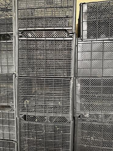 Пластиковые перфорированные ящики-корзины для хранения и перевозки. - Материал: прочный пластик. - Конструкция: решётчатые стенки и дно для вентиляции и стока влаги. - Форма: прямоугольные, штабел...