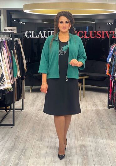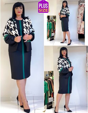 Женские нарядные платья и костюм Размер 6 турецкий, российский 48-50 1) Платье PIENNA (с биркой): - Макси длина - Темно‑зеленый/черный фон с цветочным принтом в приглушенных тонах - Застежка на ряд...