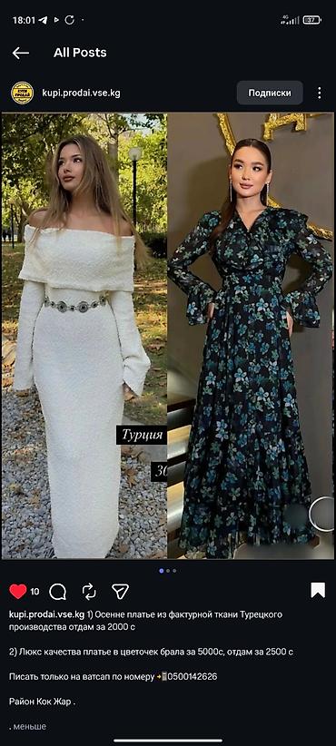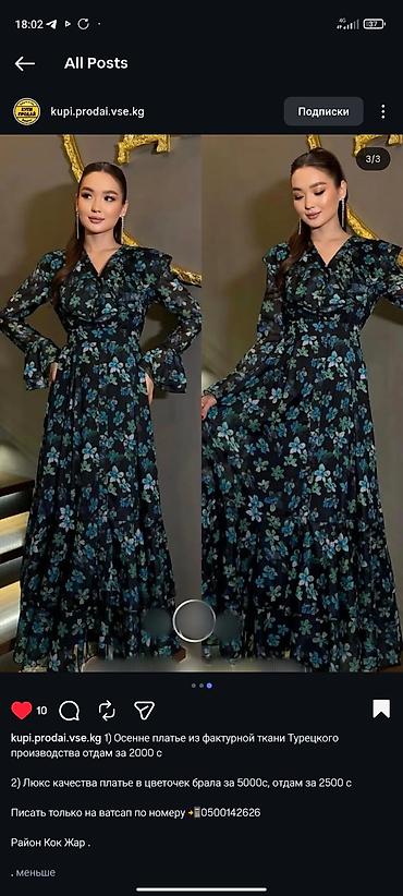 2) Платье люкс-качества в цветочек. Черная основа с сине-зелеными цветами, длина макси, V-образный вырез, фигурная рюша на лифе, длинные полупрозрачные рукава с воланами, многослойная струящаяся юбка. Покупалось за 5000 с, отдам за 2500 с.