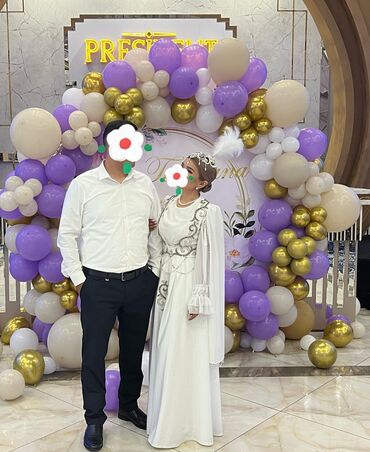 Платье на кыз узату. - Размер: 42 - Полностью ручная работа - Надевалось один раз Белое длинное платье свободного кроя с длинными рукавами. Украшено ручной вышивкой и мерцающим декором по передне...