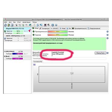 - S.M.A.R.T./диагностика: на скрине Hard Disk Sentinel — здоровье 100%, производительность 100%