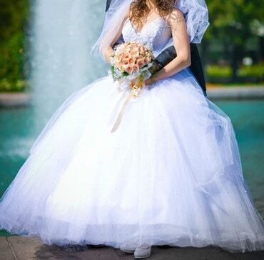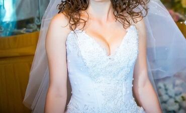 Продаётся шикарное свадебное платье,можно одеть как мусульманское свадебное платье.Надето один раз на своей свадьбе. размер от 44-48.