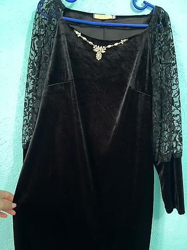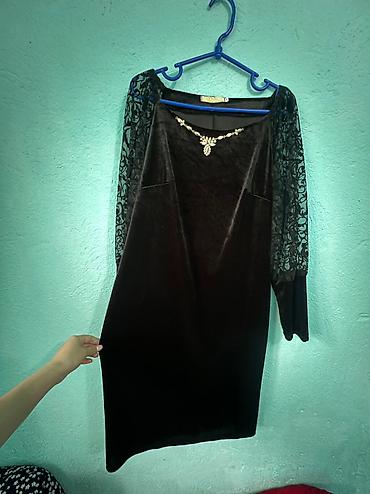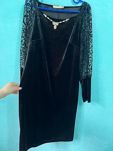 Платье женское нарядное, коричневое, миди. Верх и часть юбки украшены пайетками, вторая часть выполнена из бархатной ткани, создавая эффект асимметрии. V‑образный запах на лифе, рукава 3/4 с легкой...