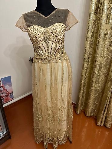 Вечернее платье, Длинная модель, Велюр, С рукавами, S