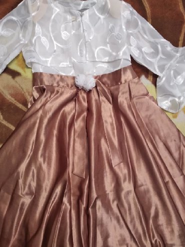 Нарядное детское платье в кремово-молочном оттенке. Подойдёт от 7 до 11 лет . б/ у цена 1500 сом вместе с туникой - Размер: на вешалке указан 56 (ориентируйтесь по меркам/фото). - Верх: плотный...
