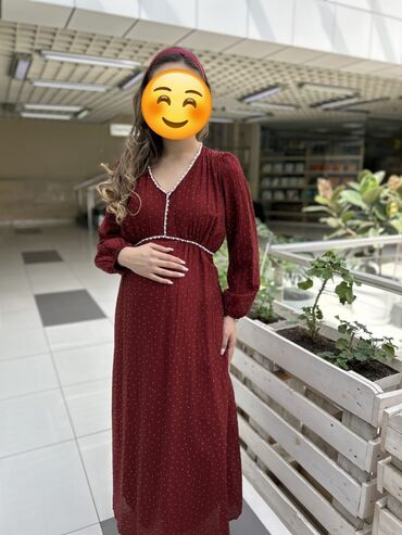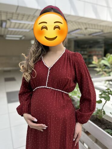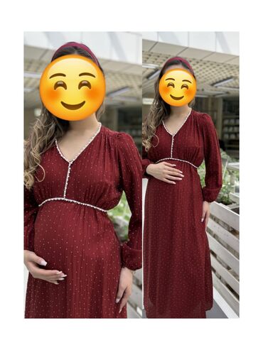 Платье для беременных, бордового цвета с мелким светлым горошком.