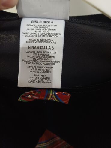 - Верх (лиф/болеро): бархатистая ткань черного цвета — 90% полиэстер, 10% спандекс.
