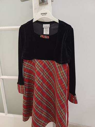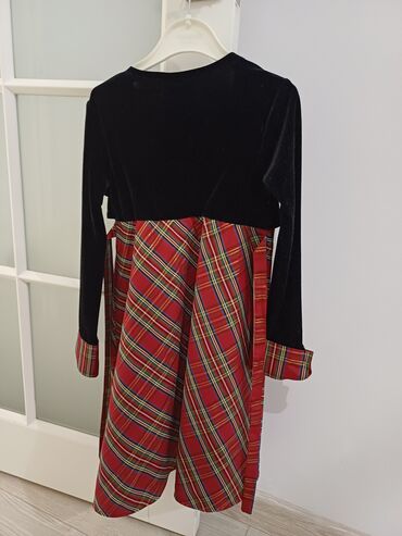 Элегантное нарядное платье с сочетанием черного верха и клетчатой юбки — яркий вариант для праздников и семейных мероприятий. Рекомендации по уходу указаны на ярлыке.