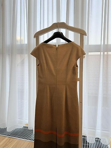 Платье-футляр MaxMarra карамельно-коричневого оттенка с мягким градиентом к низу и контрастной терракотовой полосой по подолу.