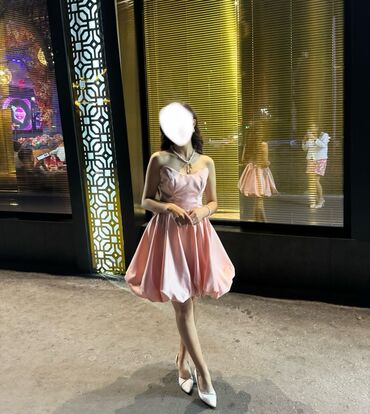 Вечернее платье, Коктейльное, Короткая модель, Атлас, Без рукавов, M