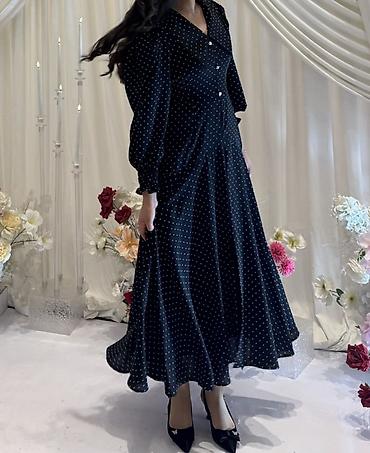Платье миди/макси с длинным рукавом в горошек. размер стандарт.
