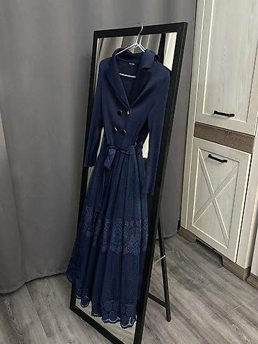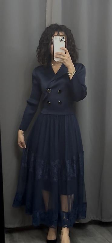 Платье-пиджак в темно-синем цвете, миди длина.