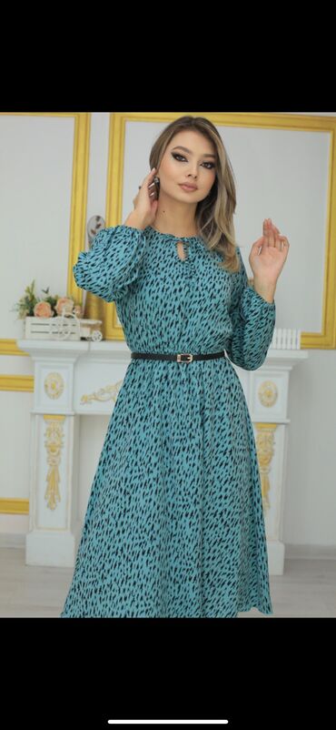 Повседневное платье, Made in KG, Осень-весна, Длинная модель, Атлас, Прямое