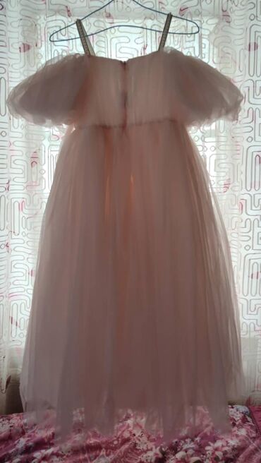 Продаю платье 7-8 лет — 500 сом. Нарядное детское платье в персиково-розовом цвете: - Верх на бретелях с декоративной вышивкой и блестящими элементами. - Пышная юбка из нескольких слоев полупрозра...
