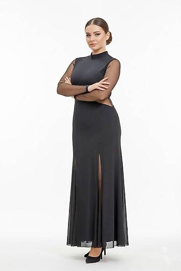 Изысканное вечернее платье в пол, которое идеально подойдет для торжественных мероприятий, свадеб или выпускных вечеров. Платье выполнено в глубоком черном цвете и выгодно подчеркивает фигуру.
