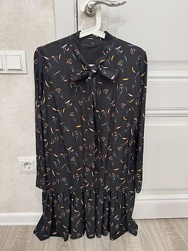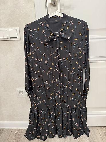 Платье макси с принтами и поясом - Длина: макси - Крой: свободный силуэт с акцентом на талии, съёмный пояс с круглой пряжкой в тон - Верх: стойка-воротник, планка на пуговицах по всей длине - Рука...