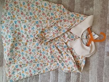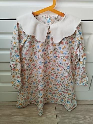 Платье новое для девочки с длинными рукавами и цветочным принтом. Имеет широкий круглый воротник контрастного бежевого цвета. Застегивается на пуговицы сзади. Подойдет для повседневной носки или для праздничных мероприятий.Размер 116-122,6-7 лет