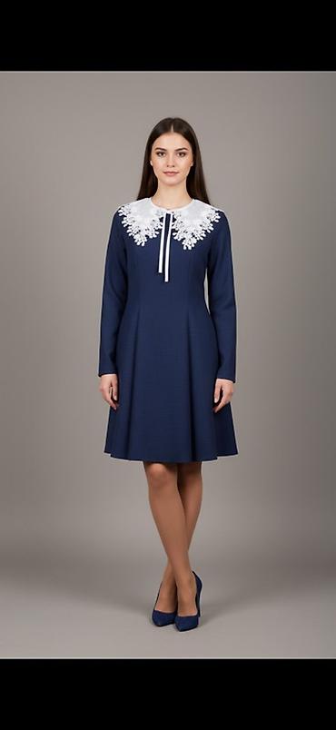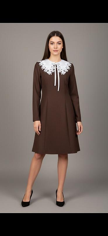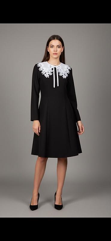 Платье с длинным рукавом и контрастным кружевным воротником-пелериной.