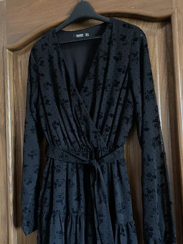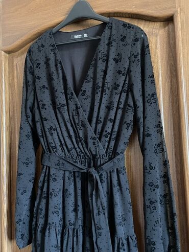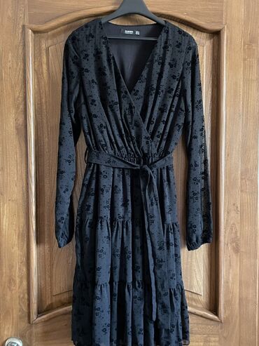 Платная доставкаСамовывозЧерное платье с длинными рукавами и цветочным рисунком. Платье с запахом и поясом на талии. Юбка платья многоярусная. Универсальный вариант для создания элегантного образа. Состояние: 10/10