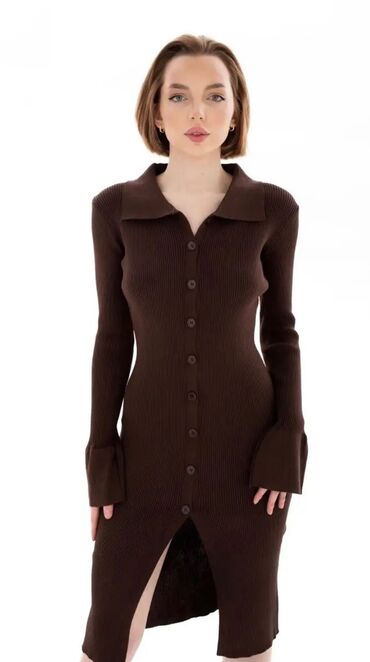Платье трикотажное, однотонное, цвет шоколад - Длина: миди. - Рукава