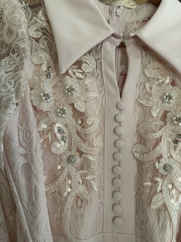 Нарядное платье миди из легкой струящейся ткани в нежном персиково-кремовом оттенке. Покупала в магазине Эркаим за 4500с отдаю за 2800. Одевала только на 3 часа на гулянку Особенности: - V-образн...