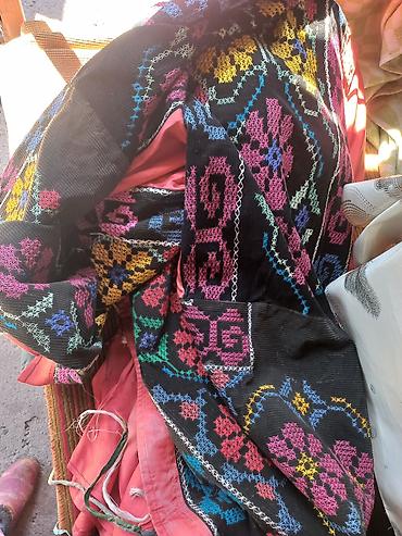 - Этническая стёганая накидка/палантин на чёрной основе с яркой вышивкой крестиком: орнаменты в розовых, бирюзовых, жёлтых, синих и зелёных тонах. Контрастная подкладка. Можно использовать как плед, декоративную накидку на плечи, покрывало или элемент интерьера.