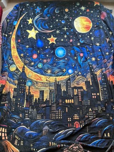 Плед с рисунком «Ночной город и космос»