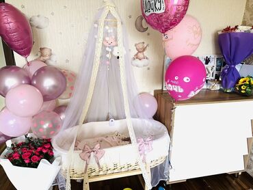 Плетёная люлька-колыбель для новорождённым до 2лет с полным комплектом текстиля и декором.