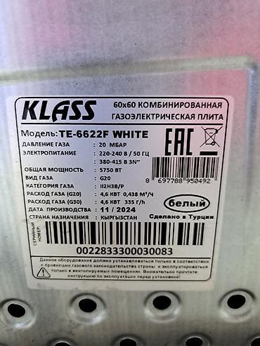 TE-6622F белого цвета,с двумя газовым и двумя электрическими конфорками ,электрической духовкой объем 60 литров шириной 60см.