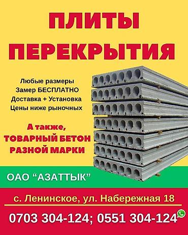 ЖБИ Завод в"Бишкеке" ПЛИТЫ ПЕРЕКРЫТИЯ(пустотные) Один из крупнейшых завода в Кыргызстане. Завод уже работает более 50лет на рынке и качество товара соответствует всех тех.характеристки по качес...