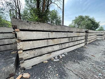 Железобетонные плиты перекрытия Размеры 12 метров длина 3 метра ширина - Материал: тяжелый армированный бетон, внутри стальная арматура; на торцах видны монтажные петли для...