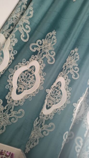- Комплектация: пара полотен (видно два портьерных полотна у окна) + светлая подкладочная/сопутствующая штора-компаньон и тюль.
