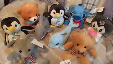 Большая партия мягких игрушек Описание: - Разнообразие персонажей и животных: пингвины, панды, кролики, медвежата, щенки, морские зверята, обезьянки с длинными лапами, ламы, персонажи в костюмах и...