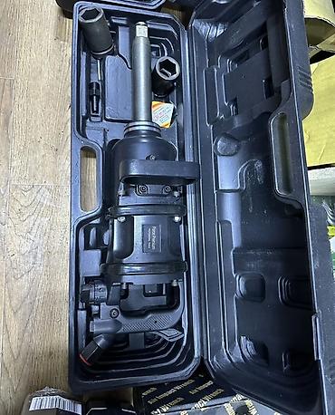 - Комплектация: жесткий пластиковый кейс с формованными посадочными местами, набор ударных головок (видны 2 крупные головки и удлинитель), штуцер/ниппель для подключения воздуха