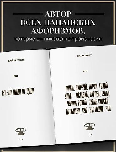 - Иллюстрированный сборник «легендарных цитат» в фирменном «пацанском» стиле остроумные афоризмы, короткие фразы и мотивационные перлы, поданные с самоиронией.