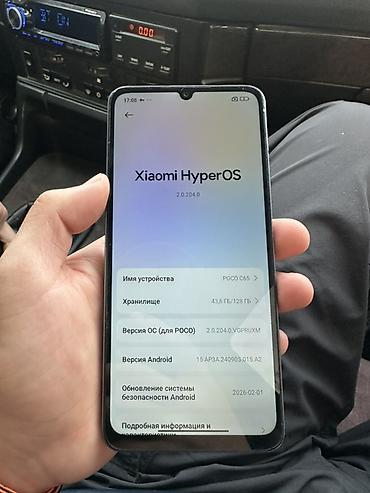 POCO M6 смартфон Основные характеристики: - Экран: безрамочный дисплей с центральным вырезом под фронтальную камеру. - Память: 128 ГБ встроенной, на устройстве доступно ~49,9 ГБ (скриншот в настро...