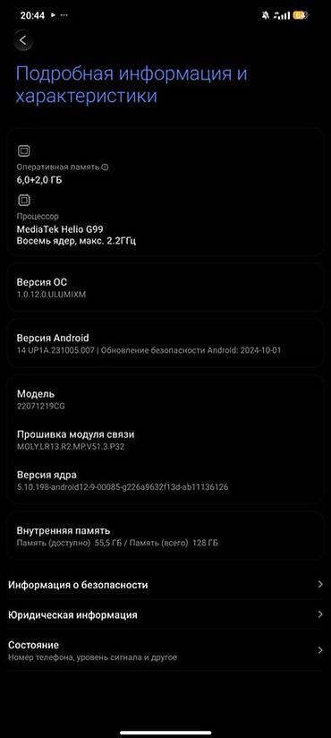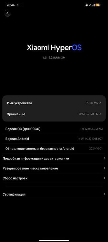 - ОС: Android 14 с оболочкой Xiaomi HyperOS (версия 1.0.12.0 ULUMIXM), актуальный патч безопасности Android от 2024‑10‑01.