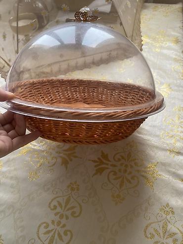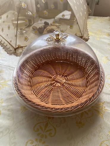 Подача для выпечки/фруктов с прозрачным куполом. - Круглая плетёная