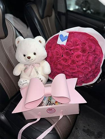- Возможность сочетать: букет + мишка + сладкая коробка.