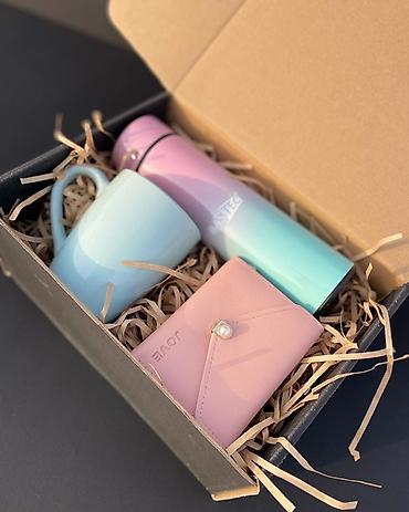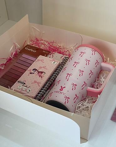 Все наборы аккуратно скомплектованы и готовы к вручению: сочетание пастельных оттенков, практичных аксессуаров и сладкого/бьюти‑элементов. Отличный вариант для поздравлений, внимания коллегам и близким.