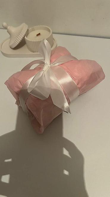 - Мягкое розовое полотенце/варежка для умывания, перевязанная лентой