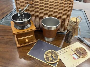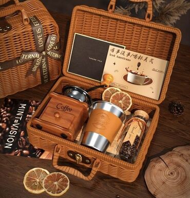 Подарочный кофе набор • Плетеный чемоданчик (с кожаными креплениями) • Ручная кофемолка 😍 • Металлический стакан (с кожанкой накладкой-защищает от горячего) • Стеклянная колба с зернистым кофе. • О...